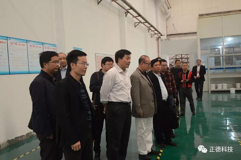 2018年4月8 日下午,茂名市委組織部副部長梁田歡、茂名科技局黨組副書記陳軍一行及華南理工大學科技成果轉化處領導前來我司調研參觀;正德科技副董事長魏海鷹先生熱情接待,副董事長魏海鷹先生向客人簡要介紹了正德公司發展現狀,并帶領客人參觀了展廳及生產線。